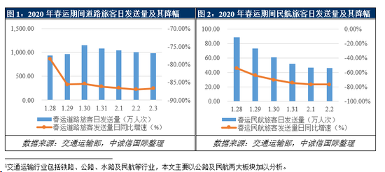 从交通运输行业 来看,根据公开披露信息,受新型冠状病毒感染的肺炎疫情影响,春节假期10天(1月24日至2月2日),预计全国铁路、道路、水路、民航共发送旅客1.9亿人次,比去年春运同期下降近73%;而春运前24天(1月10日至2月2日),全国铁路、道路、水路、民航预计共发送旅客12.85亿人次,比去年同期下降27.4%。由于国家延迟上班及学校开学时间、部分城市封城封路封小区、市民取消出行等相关措施一方面有效地控制了疫情,但同时交通运输的停滞不可避免地对部分企业的经营活动造成了一定负面影响,可能将造成企业营业收入的大幅下降。春节假期正是新冠肺炎疫情防控关键期,也是春运返程高峰期,交通运输既是遏制病毒传播的重要环节,又是服务群众出行和物资供应的重要支撑。2月10日,随着各省企业逐步复工,公路运输将迎来务工返程高峰,而2月下旬,学校将开学,高铁和民航也将迎来学生返程小高峰。