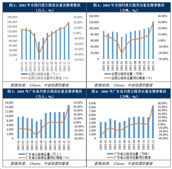 从对收费公路运营影响的持续性来看,分为公路客运和货运两方面,根据公开披露的“非典”期间公路运输数据,全国公路货运量和客运量受影响期间主要集中于2003年第二季度,同比分别下滑10.55%和22.84%,广东作为首例患者出现地区和重灾区,货运量在2003年第一季度和第二季度均大幅下滑,分别为19.93%和14.72%,客运量连续三季度下滑且在第二季度下滑最为明显,分别为15.18%、23.99%和0.88%。