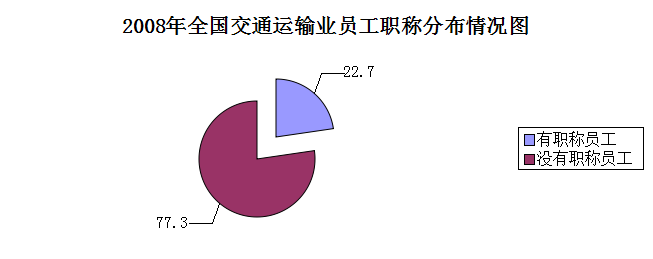根据相关数据显示:我国交通运输业专业技术人员大部分是没有职称,占总人数的77.3%,有职称的员工所占比例为22.7%。