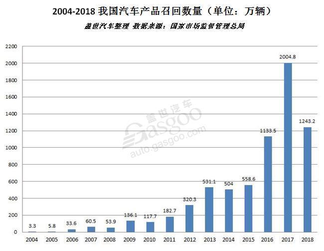 根据国家市场监督管理总局发布的数据统计,2018年国内各主要汽车产品生产者共实施缺陷汽车产品召回195次,召回缺陷汽车1243.2万辆, 较2017年召回总量2004.8万辆有所下降,这也是自2014年起近五年来召回数量首次出现回落。