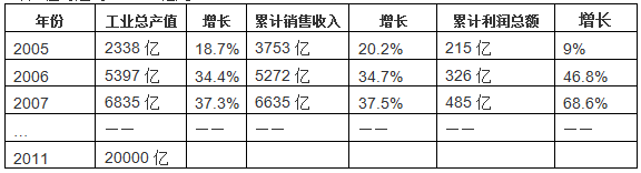 2、我国汽车零部件行业市场巨大,但本土产品市场占有率低,面临产业升级,需要科学的人力资源管理系统支撑,而薪酬管理是极为重要的人力资源管理模块。2002年以来,中国汽车产销量保持了近10年的高速增长,汽车工业已发展成为中国经济的支柱产业。2009年,中国汽车产销双双突破1300万辆,跃居全球第一,到2011年,中国汽车产销突破1900万辆,连续3年位居全球第一。2005年至2011年间汽车零部件行业发展迅速,如下图所示: 2005年汽车零部件工业总产值由2338亿增长到2011年的20000亿,预计到2015年产值可达到25000亿元。