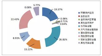 图22015年环境服务细分领域年收入占比(数据来源:2015年度环境服务业财务统计调查)