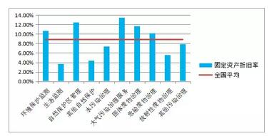 图72015年环境服务细分领域企业固定资产折旧率(数据来源:2015年度环境服务业财务统计调查)