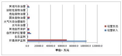 图102015年环境服务细分领域事业单位经营收入与支出(数据来源:2015年度环境服务业财务统计调查)