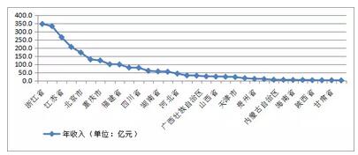 图112015年环境服务业年收入地域分布(数据来源:2015年度环境服务业财务统计调查)