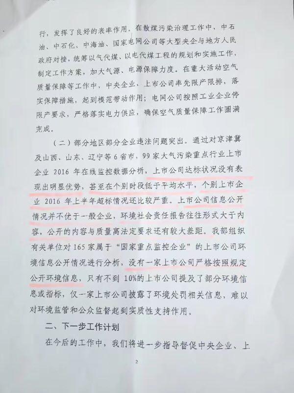 环保部表示,央企与上市公司在环境管理中虽总体表现良好,但京津冀及山西、山东、辽宁等6省市99家大气污染重点行业上市企业2016年在线监控数据显示,上市公司达标状况并未表现出明显优势,甚至在个别时段低于平均水平,个别公司在2016年上半年超标情况还较严重。
