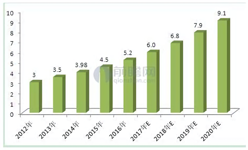 前瞻产业研究院发布的《2017-2022年中国环保行业发展前景与投资预测分析报告》显示:截至2015年底,环保产业产值达到4.5万亿元,根据国务院下发的《关于加快发展节能环保产业的意见》提出,我国节能环保行业产值年均增速应在15%以上,因此预计到2020年能超过9万亿,行业市场前景极为广阔!