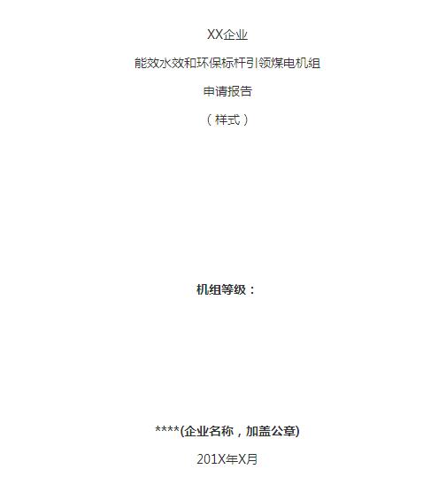 企业能效标杆引领煤电机组申请报告