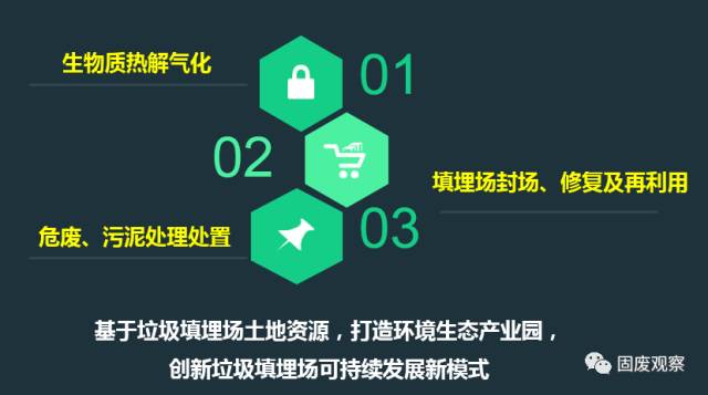 城市用地紧缺,可建设使用的土地资源非常匮乏,封场后的垃圾填埋场对城市而言是稀缺的优质地块,对该土地加以利用,使土地资源得到二次开发,从而增加了城市可利用土地的面积。我们可以利用生活垃圾填埋场土地资源打造环境生态产业园,整合沼气利用、危废处理、污泥处理处置、生物质资源化利用等领域,打造城镇环境生态产业园,形成集环保、自然、艺术、娱乐教育等为一体的具有经济价值的商业项目,创新垃圾填埋场可持续发展新模式。