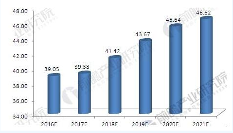 2016-2021年中国工业固体废物产生量情况预测(单位:亿吨)