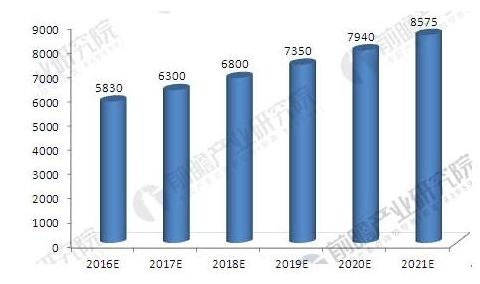 2016-2021年中国工业固体废物市场容量预测(单位:亿元)