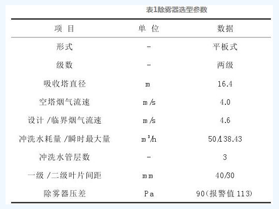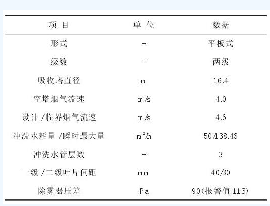 某发电公司660MW超临界燃煤空冷机组,锅炉型号:DG2100/25.4-II2,配套建设有石灰石-石膏湿法脱硫装置。每座吸收塔顶部安装两级水平布置的除雾器,参数见表1。