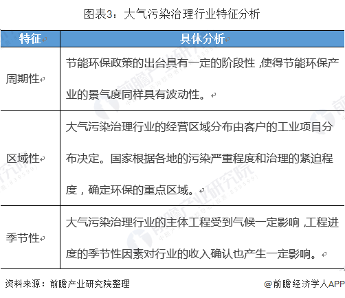 大气污染治理行业具有明显的周期性、区域性、季节性特征