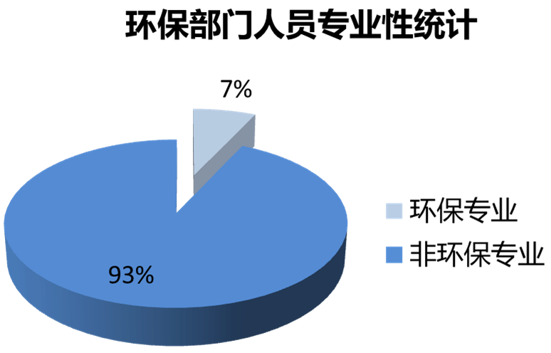 2、专业人才结构配置不合理。目前,环保部门一方面人才缺乏;另一方面却存在人才浪费现象。以下图为例,根据对黔东南地区各部门人员的统计(本文职工人数不包括监测站人员),现有职工159名,环保专业毕业的只有11人,占7%,而其他专业的占93%。这充分说明环保部门环保专业人才奇缺,而非专业人员相对过剩。