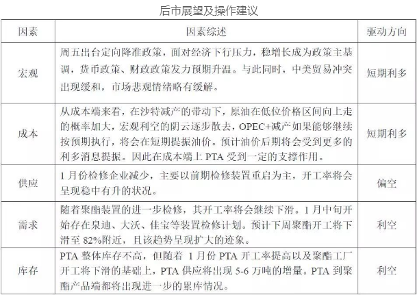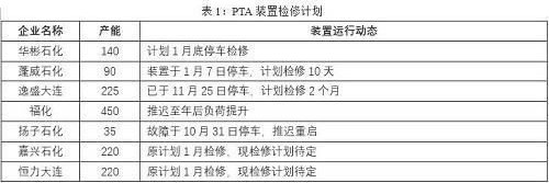 装置方面,逸盛大连225万吨装置预计1月20日左右重启,三房巷120万吨装置已经重启,华彬140万吨装置预计1月下检修10天。