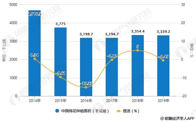 2014-2019年中国棉花种植面积统计及增长情况