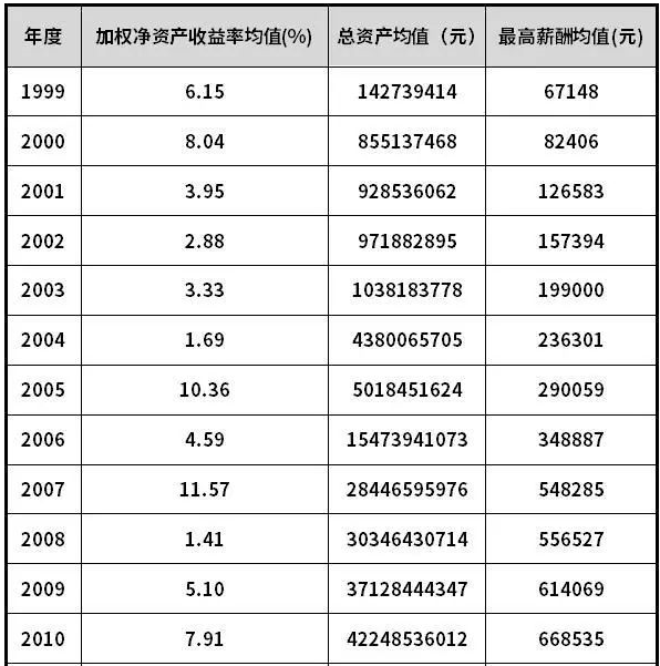 表4和图5是近十多年来国内A股上市公司加权净资产收益率、总资产、最高薪酬的增长情况。从图表中可以看出,上市公司最高薪酬均值与总资产均值在一定程度上存在正相关关系,但在近几年总资产均值增速有所放缓,且作为股东投资回报的加权平均净资产收益率指标没有增加甚至下降的情况下,最高薪酬均值却仍呈现刚性上涨的特点,这正是人力资本价值在当今社会的体现。