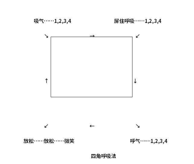 让我们先来尝试可以让自己迅速地在任何地方保持平静的方法。采用四角呼吸法,你可以找到自己的呼吸节奏。当你觉得恍惚或者超级兴奋的时候,可以用四角呼吸法来控制自己。