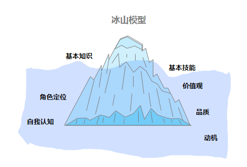 其中,“冰山以上部分”包括基本知识、基本技能,是外在表现,是容易了解与测量的部分,相对而言也比较容易通过培训来改变和发展。而“冰山以下部分”包括社会角色、自我形象、特质和动机,是人内在的、难以测量的部分。