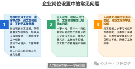 华恒智信专家老师结合多年的定岗定编项目咨询经验以及一些企业的案例经验,发现企业在定岗工作中经常面临以下几个问题:
