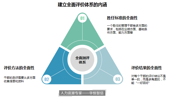 (3)评价结果的全面性。对每个干部的评价结论不是单一的,而是多角度的。按照一般的情况,公司的管理干部普遍认为,评价结果为“优秀”的干部,就是所有方面都优秀,对于评价结果为“不合格”的,则是对该干部的全面否定。华恒智信专家组经过常年研究认为,每个人都是复杂的,既有优势也有不足,在测评结果中不能全盘否定,也不能“一好百好”,要全面体现。