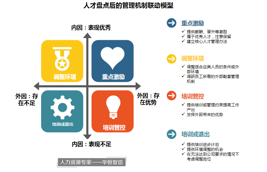 企业中对人才队伍管理不到位、需要提升管理,是很多企业人力资源管理工作中的重点和难点。在实际操作中,由于具体的标准不易提炼、企业实际评价工作不易保持公平公正,往往流于形式。在华恒智信长期开展咨询的过程中发现,对人才的盘点和评价,要依托于完善的标准建设及评价体系,并通过引入信息化工具,可以有效降低管理成本、提高工作效率。在本次能力素质模型建设项目中,通过将日常管理数据记录、提炼优秀人才标准、建立内外因评价模型、引入信息化工具,不仅快速完成了本次盘点及评价工作,而且为长期的人才队伍管理提供了标准和依据。