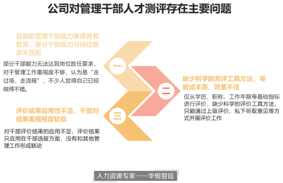 华恒智信专家团队在分析了公司在干部人才测评存在的问题后,开展内部专家研讨工作,分析目前存在的主要问题,结合该公司的实际特点和调研情况,为该公司提出以下解决方案:
