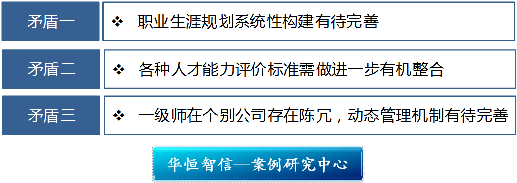 依据以上基准,咨询顾问们经过严谨地论证后认为:目前该电力科学研究院的职业发展通道体系有三项突出矛盾亟待解决。