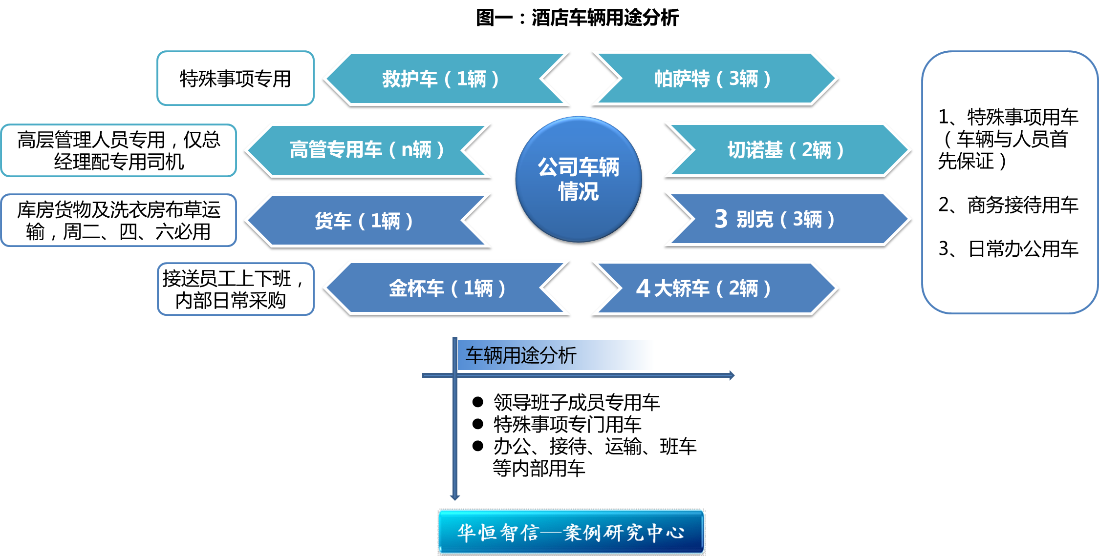 某度假村酒店地处郊区,离市中心较远,交通不是特别便利,但其优美的环境吸引着众多宾客前来度假休闲。由于交通不便,车辆外出办事往往一出去就会耽误很长时间才可以回来,所以,当某天需要用车的情况较多时,就出现车辆安排不过来的局面;鉴于酒店以接待具有一定社会背景的人物为主,并不以盈利作为企业的第一目标,以安全和高质量的服务为重,所以特殊的性质使得一些特殊情况的用车现象也比较的多,且必须安排相应的专车用于办理特殊事情,这样可利用车辆就比较有限。另外,在外出过程中,往往存在几个部门同时申请用车,但由于时间的不统一而使得车辆安排紧张。司机并非是专人专车,这样出车频次的多少和劳累程度就会存在差别,司机之间存在不公平感,酒店在车辆安排上虽然有相应的记录,但是具体的是否合理没有人进行相关的汇总、总结与分析,所以,司机间的忙闲程度完全是负责人凭感觉来定。