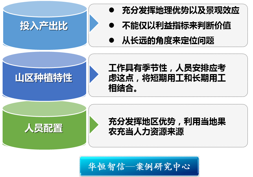 度假村酒店虽然不是以盈利为主要的目的,但是各部门的投入与产出还是需要重视的,这样的话,作为度假村的林果部而言,其目前的产出远低于投入,还未能达到收支平衡的状态,于是作为酒店管理人员在林果部人工成本的投入方面就有一定的限制,到底人工成本是高是低,与企业的发展定位有直接的联系,进而也会影响到企业的人员配置。