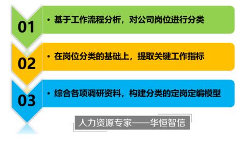 为解决以上问题,提出最适用于本公司实际情况的定岗定编方案,华恒智信项目团队通过深入调研、数据收集、对标分析等途径,提出多角度的解决建议,并逐一进行可行性验证后,提出了以下的核心解决思路: