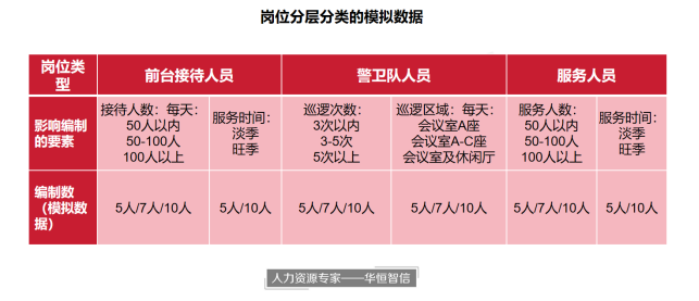 针对该招待所对于应设置多少员工编制存在困惑的问题,华恒智信建议对目前的岗位进行分层分类,提炼影响编制的要素,形成定编模型。