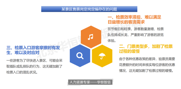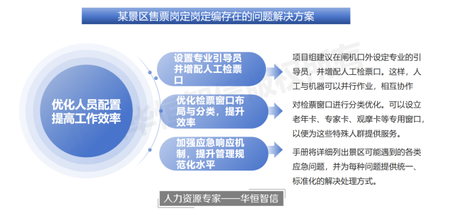 为了解决这一难题,景区领导层经过深思熟虑,决定寻求业内领先的人力资源专家——华恒智信的帮助。希望借助一专业第三方的智慧和经验,对景区内部的售票岗进行深度的改革和优化。通过精确的人员定岗定编,实现人力资源的高效配置,从而在降低成本的同时,提高管理效率,为游客带来更加优质的旅游体验。