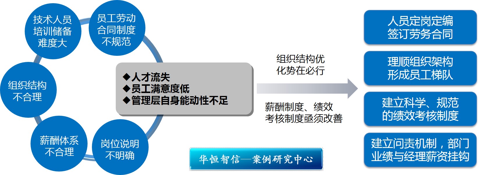 基于对这些问题的诊断,华恒智信专家又针对性地设计了解决方案,我们认为其中人员定岗定编、建立员工梯队、规范绩效考核制度等建议对企业有重要的参考价值和实施意义。