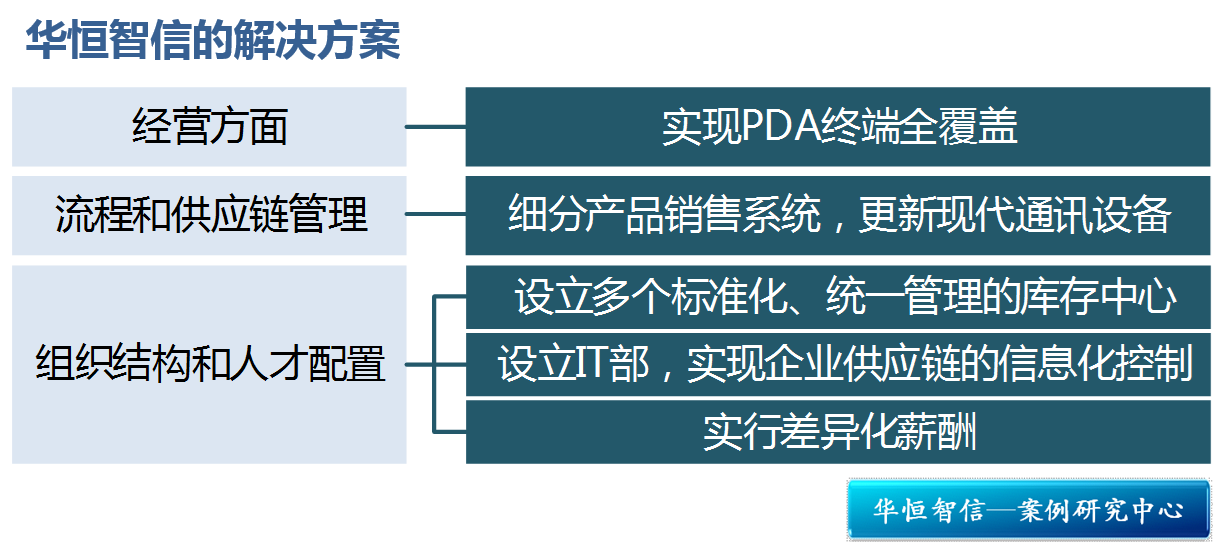 为销售企业的每个终端店面配备上PDA(Personal Digital Assistant)设备,提供记事、通讯录、名片交换及行程安排等功能,通过这种数字工具辅助个人工作。这一项举措,使得公司店面间的联系加强,提高了对市场的快速反应能力。