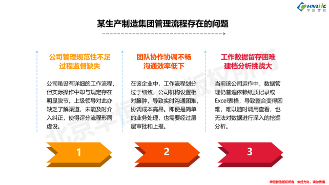 为帮助该公司解决其现存问题,华恒智信的专家老师们对公司现有流程进行了深入分析,发现该公司的问题主要是以下几个方面: