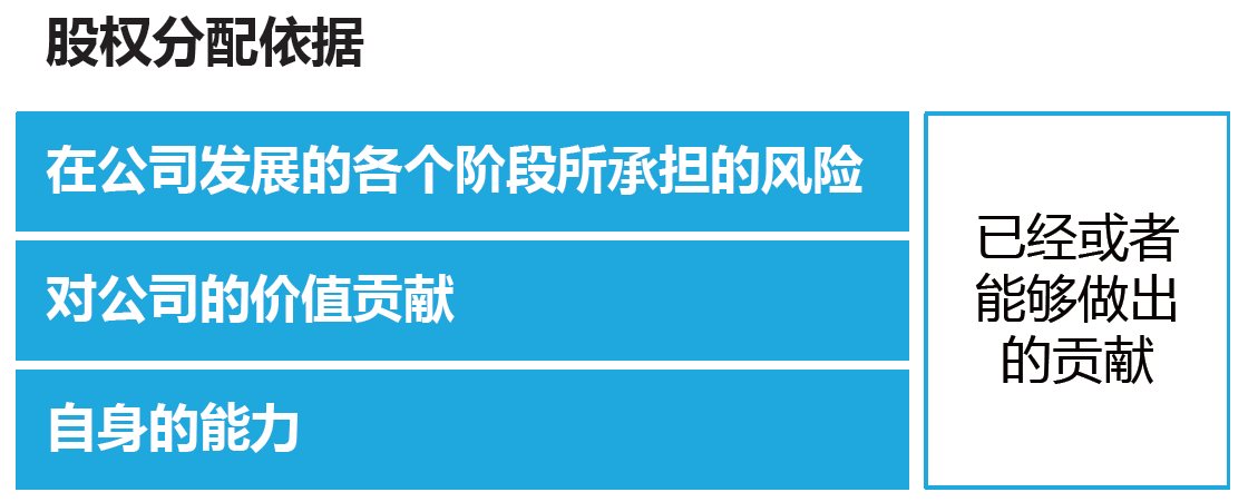 第三,能力要素。能力要素指创始人的能力,即其在自身所具备的、能为企业未来发展提供重要支撑的能力,比如研发能力、销售能力、融资能力等。创始人的能力要素越强,其对于企业未来发展中的作用就越大,所分得股权比例就应该越大。