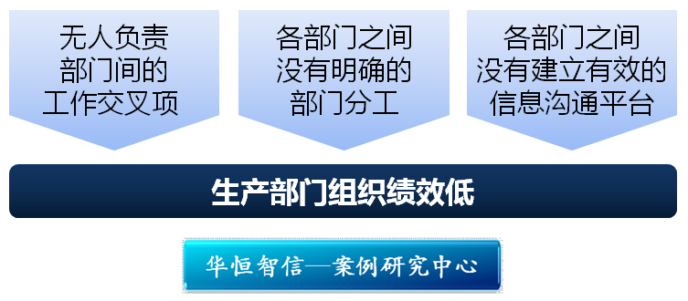 华恒智信顾问专家团队在该香精香料有限公司的后端生产部门进行走访与调研后,发现生产部门组织绩效不高的原因主要在于3个部门之间的组织分工、尤其是部门交叉工作项的分工不合理、不明确所造成的。目前,该公司的生产组织存在着以下几方面的问题,严重制约着生产部门组织绩效的提升: