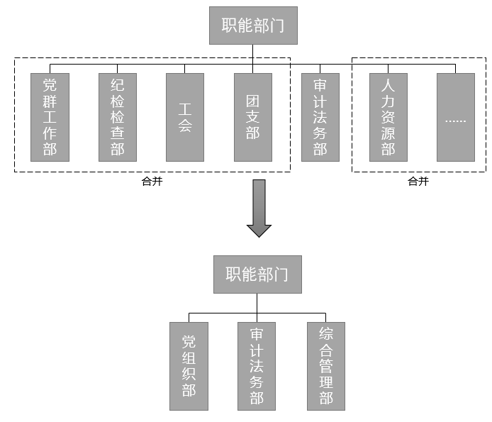 满足上级对二级公司组织架构规定与要求:集团公司对如党群部等必要部门有特定的对接要求(集团公司党群部只与二级公司对应党群部进行对接),采取“合署办公”的方式予以保留(即名义上是两个部门,但是实际工作中是一个部门的人员)。
