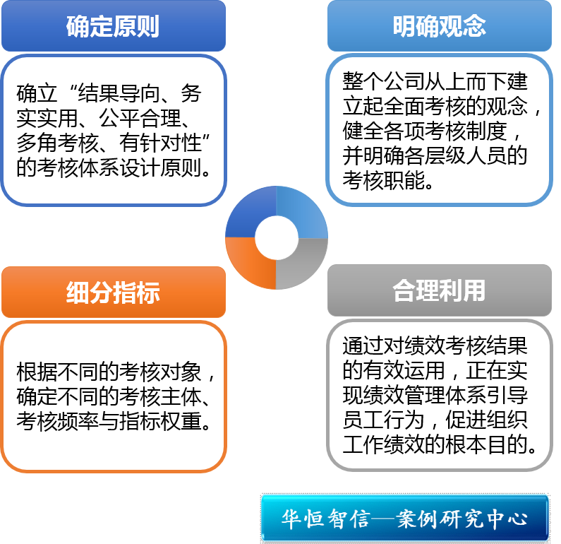 通过深入的调研、访谈、分析,华恒智信顾问专家团队认为,该公司目前的绩效管理所面临的最主要的挑战与问题是:该企业没有建立起科学可行、真正反映员工贡献程度的绩效考核体系。基于公司的现状及发展需要,针对如何建立科学、完善的绩效管理体系,华恒智信提出了以下的解决方案: