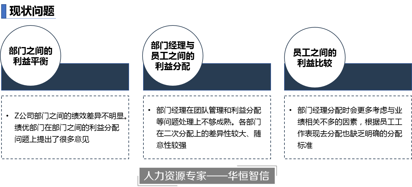 不同部门经理对于经理和员工之间利益分配上的想法差异也比较大,有人认为是由于自己领导有方、资源较多,部门才能取得好成绩,自己理应占大头;但有人认为部门业绩是部门团队共同努力达到的业绩,因此应该给员工留多一点,导致各部门在二次分配上的差异性较大、随意性较强的问题。