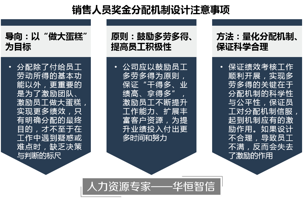 根据对多家企业的管理咨询经验和团队多年在绩效考核上的研究与实践经验,华恒智信认为在设计奖金分配机制时,应牢牢把握住以下三点: