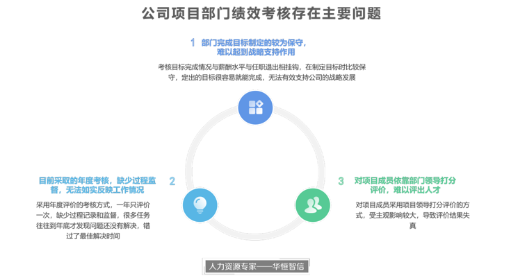 经过对该公司原有绩效考核制度的研究,结合对公司的实地调研与分析,华恒智信总结出目前公司在项目部门绩效考核方面存在三方面的问题: