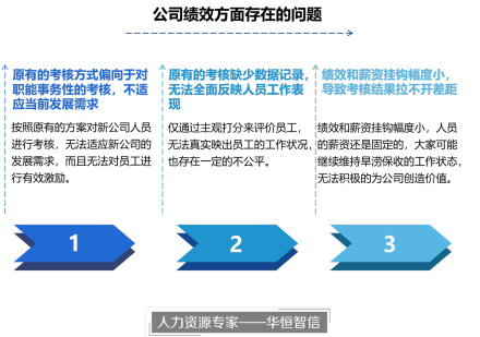 华恒智信专家老师通过与集团相关领导的多次交流,对该集团的实际情况有了初步了解,专家团队认为该集团新建立的异地公司的绩效管理方面的问题主要有以下几点:
