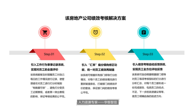 某房地产公司是由国资委直接管理的大型国有企业,于2008年上市,拥有十几家二级子公司,现有员工上万人。主营业务涵盖房产开发、物业管理、营销代理等房地产全产业链。依托品牌和实力,充分发挥产业链协同、城市综合开发、资金融通扥核心优势,该房地产公司不断发展壮大,开发项目遍布全国各地,多次组织举办了国家级、省级的重点活动,以其优质的服务水平,奠定了在同行业领域中的领先地位。该公司一直沿用公司成立初期的管理方法,在绩效考核方面,需要各部门反复撰写提报部门考核指标表单,考核指标也不明确;因为资料太多,各公司领导很少全部看完,往往根据整体感受来进行简单的总体评价,主观性强;并且打完分,绩效考核就结束了,以前的资料就废弃不用了,大家并不知道自己的结果和历史对比有没有进步,没办法进行查缺补漏,个人绩效与能力一直停滞不前。公司领导层在了解到信息化绩效考核体系的优势后,决定通过建立信息化的绩效考核体系来解决上述问题,并邀请了华恒智信的专家老师来对该体系进行搭建工作。
