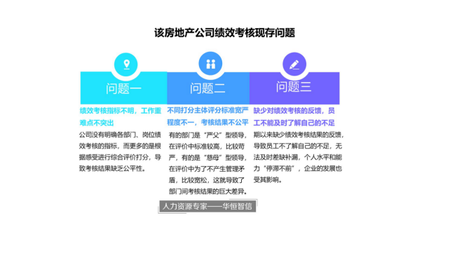 为帮助该企业解决其现存问题,华恒智信的专家老师们对该公司原有的绩效考核系统进行了深入分析,发现该系统主要存在以下问题: