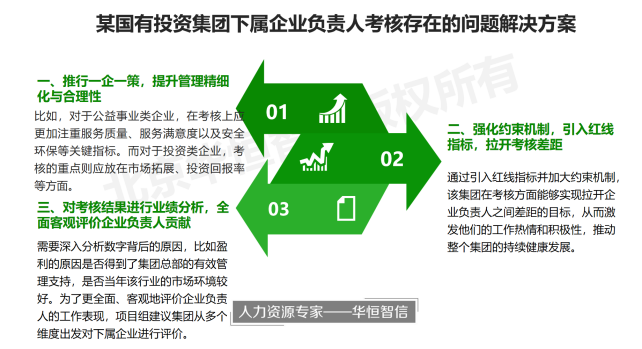针对当前该集团下属各企业负责人在考核中难以拉开差距的问题,华恒智信提出应进一步强化约束机制,并引入红线指标,以确保考核的公正性和有效性。