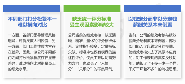 然而,随着市场竞争加剧、行业转型加速,公司内部的人力资源管理问题逐渐暴露。尤其是绩效考核环节,面临着诸如各部门打分松紧程度不一、缺乏客观评分标准、以钱定分而非以分定钱等问题,导致大家觉得绩效考核就是走过场、干多干少一个样等。时间久了,大家积极性下降,对组织存在不信任,考核方面的问题逐步影响了组织活力与员工积极性,制约了公司的进一步发展。