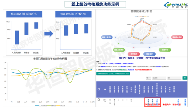 华恒智信专家团队为公司构建了线上绩效评价系统,引入了华恒智信“汇率”偏分倾向修正功能。这一功能可打破部门壁垒,实现分数的跨部门“流通”。在系统中,各部门完成评分后,系统会自动进行统计、计算与分析,并智能推荐经过“汇率”偏分倾向修正后的评价结果。这就如同各国货币交换一般,将不同部门的分数“换算”到同一标准之下,从而为领导在修正分数、校准结果、横向评价,以及其他管理决策时提供科学、客观的参考依据。避免过往部门分数整体偏高或偏低导致的跨部门对比障碍。