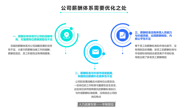 为了保持在市场竞争中的优势、发挥管理的提质增效作用,公司领导决定从薪酬改革入手,希望通过科学的薪酬体系实现对人才的有效激励,并支持公司的发展。经过内部调查,公司领导发现虽然大家的薪酬是按时、按标准发放的,但是仍然有许多员工对公司的薪酬体系不满意,特别是一些经验丰富的老员工,大家纷纷表示目前薪酬存在倒挂问题、多劳没有多得等,认为不公平,甚至出现了部分员工离职的问题,对此,公司领导决定对薪酬管理体系进行优化改革,于是邀请了专业的人力资源咨询公司——华恒智信,希望专家老师能够帮助公司优化薪酬管理体系,促进企业管理效率的提升。